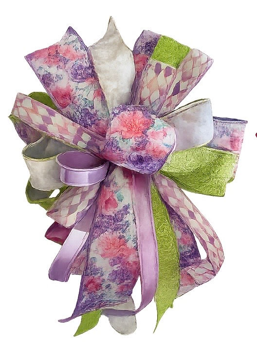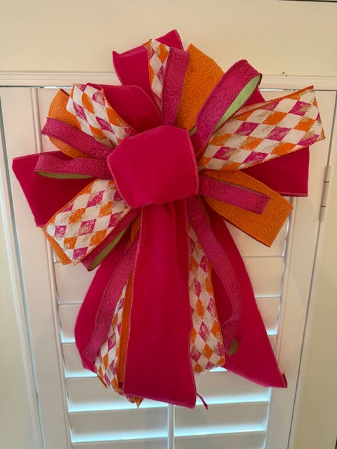 Colorful XL bow in bright pink, florals, green, and white